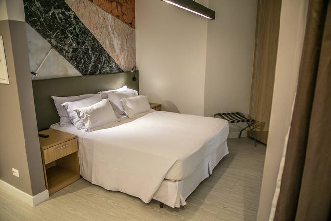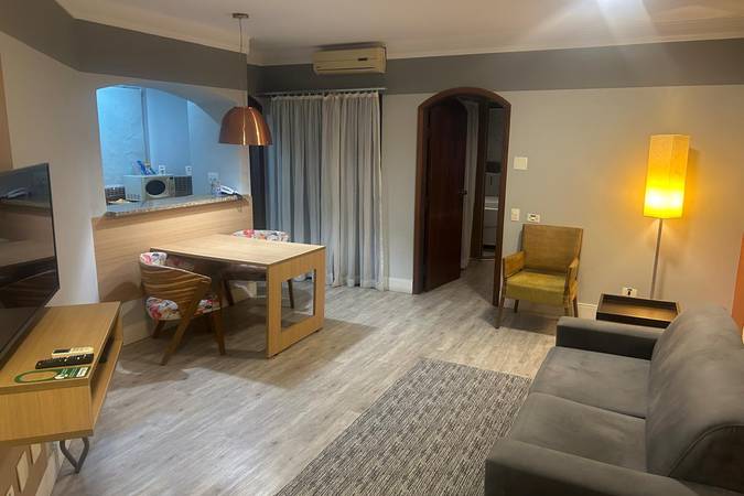 Composto por uma suíte elegante com cama de casal, uma espaçosa sala de estar, cozinha totalmente equipada e uma sacada para apreciar a vista.